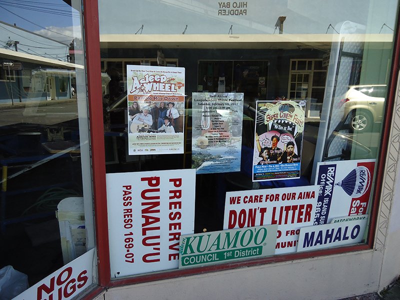 Storefront window ‘collage’ in downtown Hilo, a very unique place!