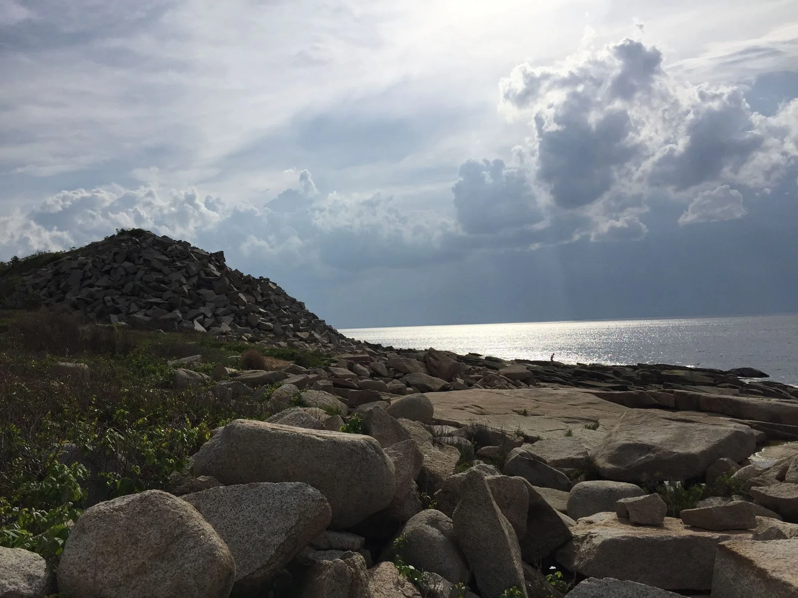 I didn’t have much time, it was darkening quickly so I ran down the path until I reached the Quarry. ‘Magnificent’ was all I could think. Absolute beauty, the rocks, the platform, this was It. As I wandered towards the edge of this Quarry I noticed a rock hill and outcropping. I followed the path down and there, standing before me, was one of the most glorious sights I have ever seen, comparable to anything I had laid eyes on in Hawaii. I could see out in the ocean, not as far as I would have hoped, the blackest clouds and the faint spill of lightning over the ocean. Having spent the majority of my life near the waters, I knew that what I was about to do went against every thought, every knowing of the right thing to do. But sometimes, you have no choice, right?