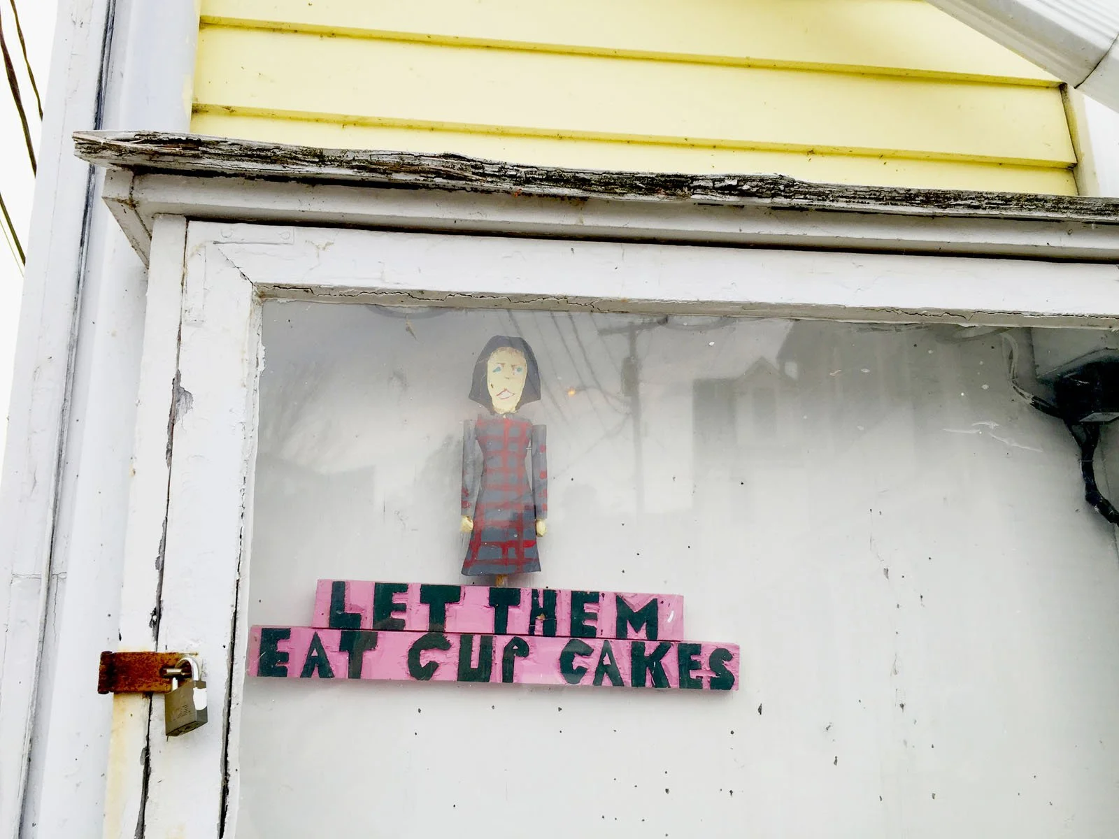 I came across this cardboard crafted sign that was padlocked (yes, locked!) inside a glass window-like case on the side of a yellow 1700s era house in the Cape Ann area. It stands to be one of the funniest, most joyful recollections of that trip, any trip really. ‘Let Them Eat Cupcakes’. hahaha sooooo funny! Who made that sign!?!