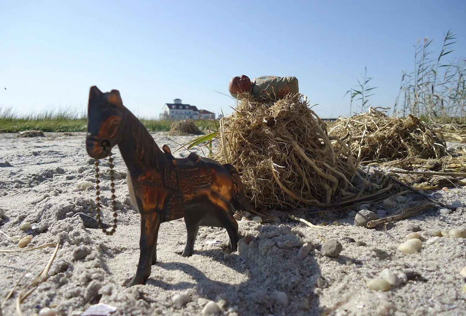 Unknowingly, I climbed through a small forest of native poison ivy bushes to land on this nearly deserted island sand bar, a horseshoe mating grounds, with an old ship captain’s house as the backdrop.
